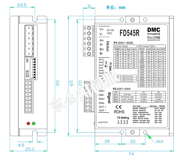 ●支持DMC2配置軟件平臺,方便有特殊要求客戶對驅(qū)動器進行配置