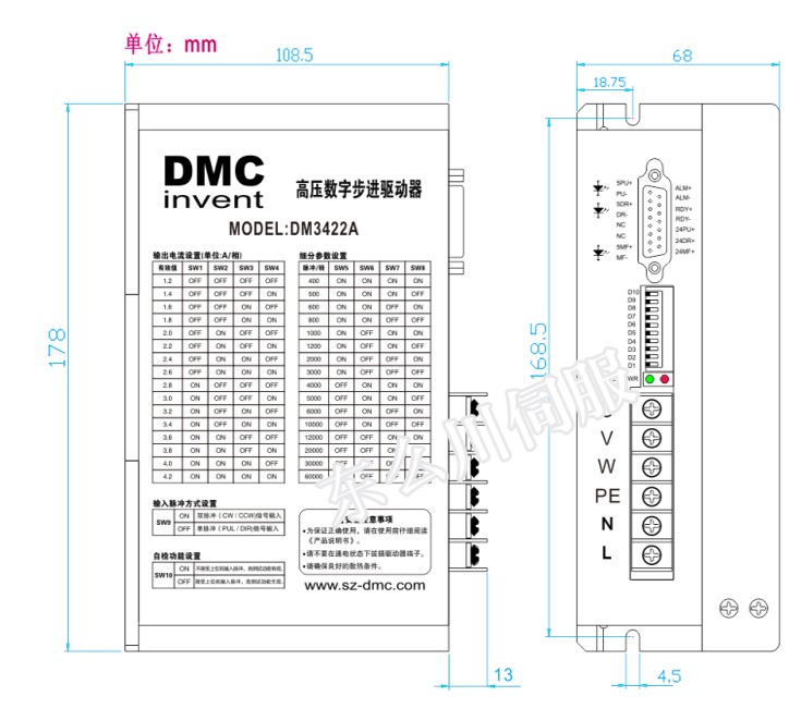 ●適合驅(qū)動86,110,130 電感量大于10mH 步進電機。