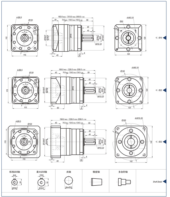 ●轉(zhuǎn)動(dòng)慣量:指減速機(jī)輸入端啟動(dòng)需要的慣量值,樣本上均指輸入軸徑為Ø22時(shí)的結(jié)果。